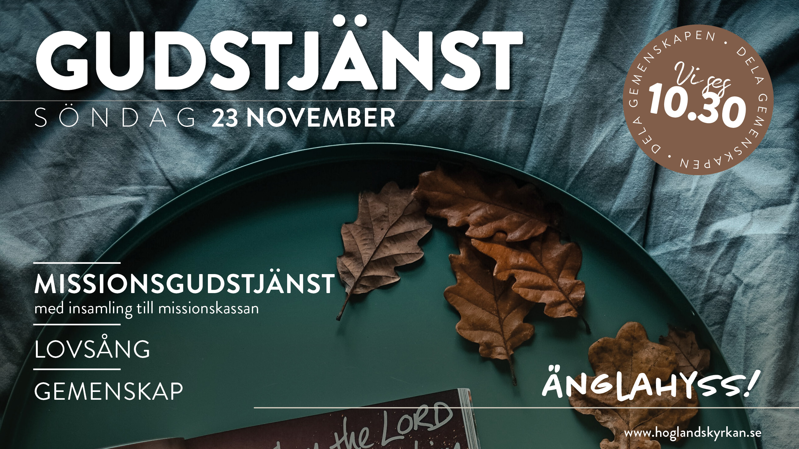 Välkommen till missionsgudstjänst! Lovsång och gemenskap. Predikan av Joel Lundgren. Insamling till missionskassan och missionsarbetet 2026.